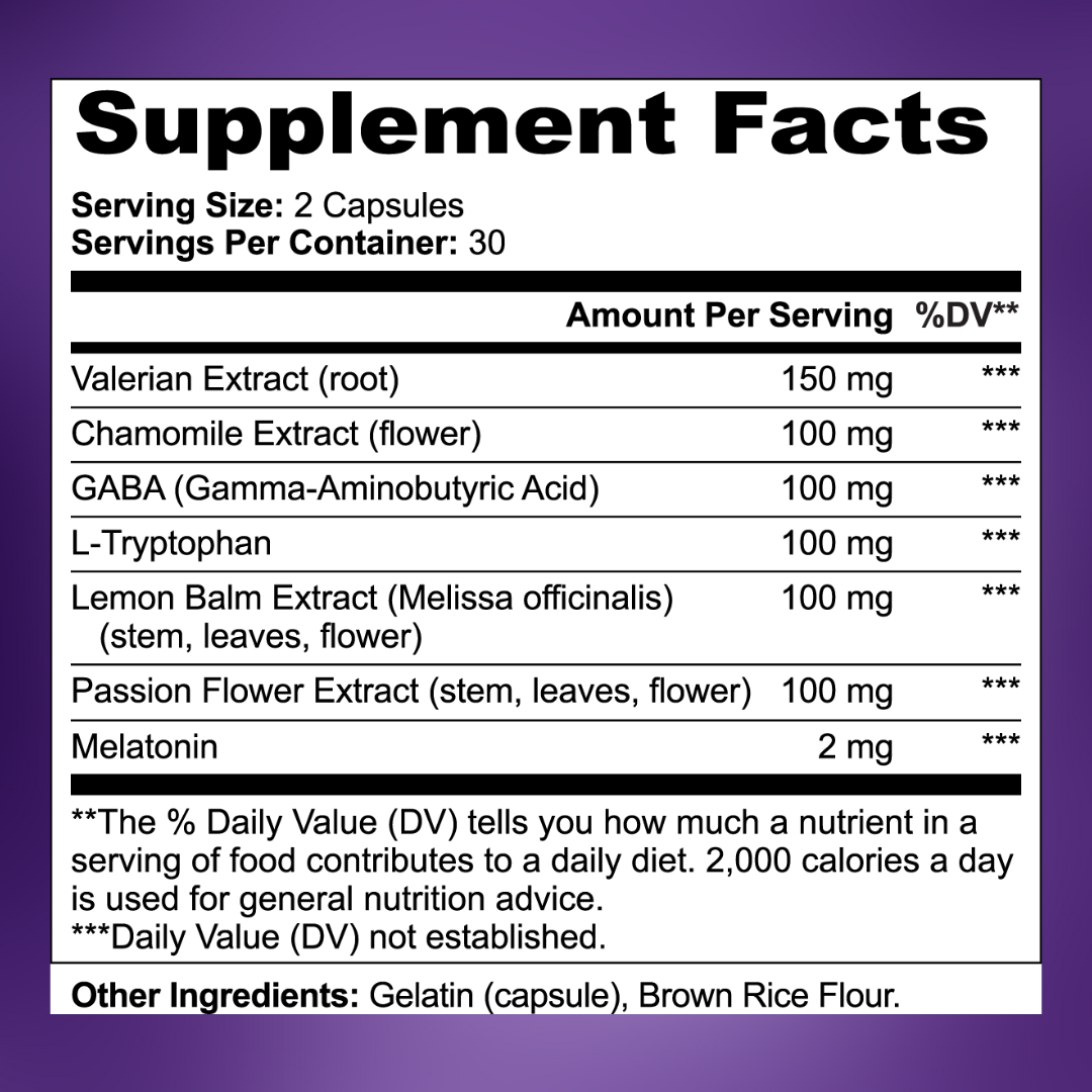 As a dietary supplement, adults should take two (2) capsules daily, ideally 30 to 60 minutes before bedtime. For best results, take with 6 to 8 ounces of water as part of a calming nighttime routine. To maximize effectiveness, consider minimizing screen time and avoiding caffeine in the evening.