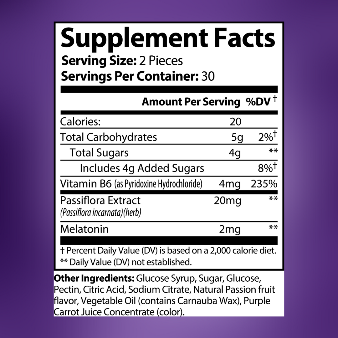 As a dietary supplement, adults should take two (2) gummies once daily, ideally 30 to 60 minutes before bedtime. For best results, incorporate them into your evening wind-down routine. These passion fruit-flavored gummies are easy to enjoy and require no water—just chew and relax.